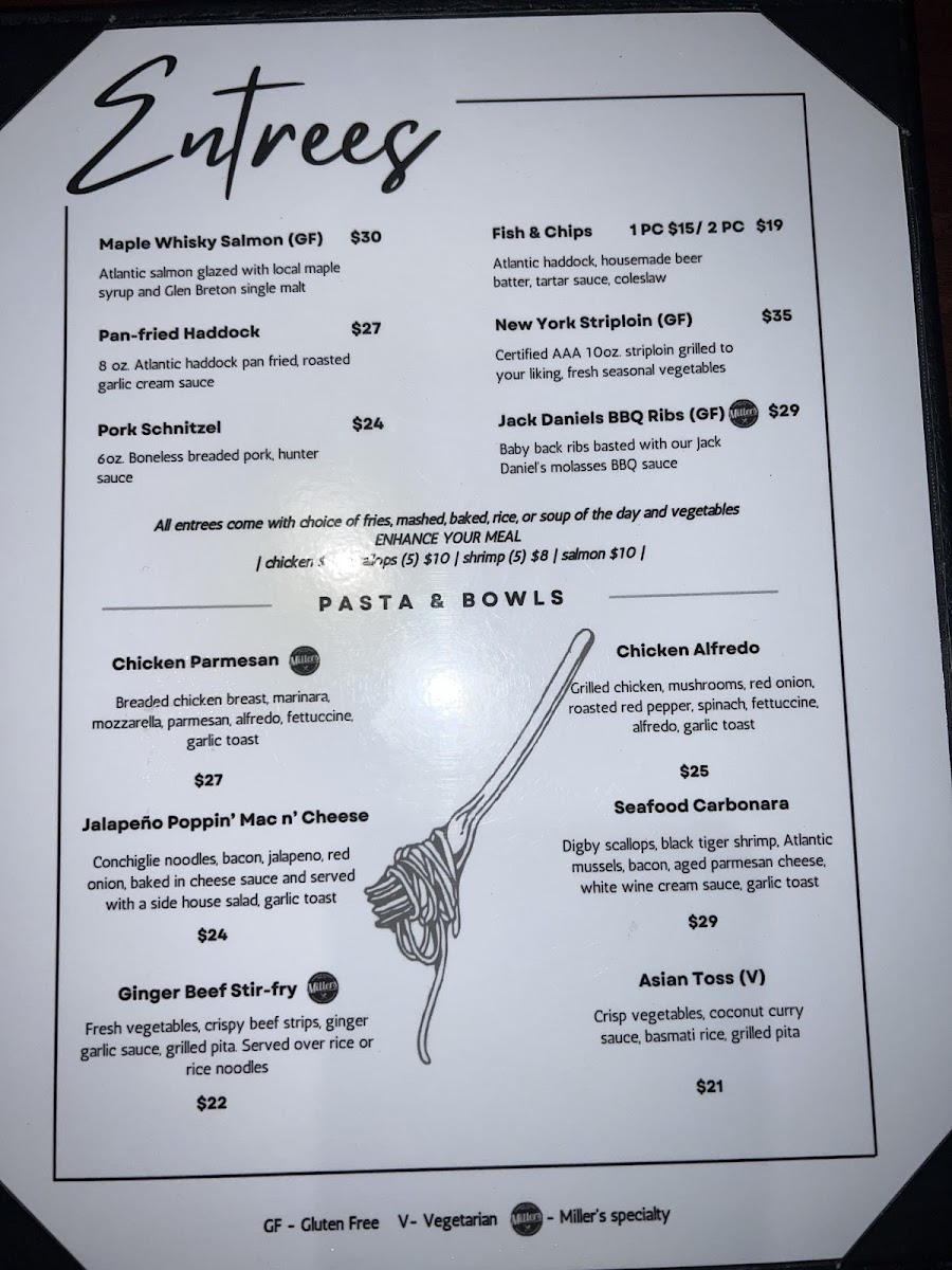 Welcome to Miller's, a hidden gem nestled at 717 Reeves St, Port Hawkesbury, NS. This delightful restaurant, easily accessible behind a hotel, offers a charming patio dining experience perfect for sunny days. The service at Miller's is consistently praised, with attentive staff who elevate your dining journey.